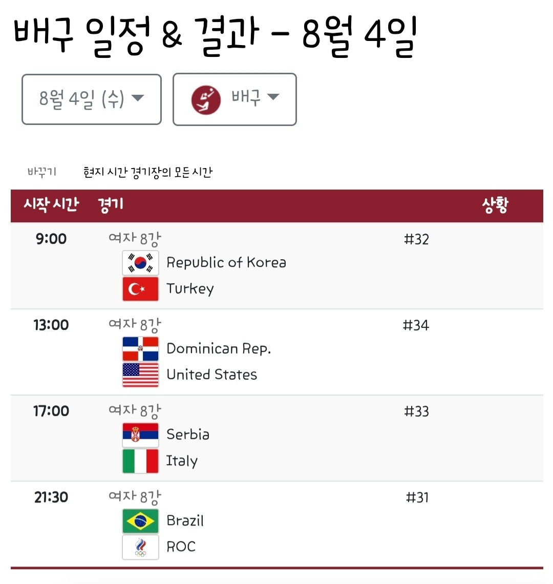 (서울=news1) 김현아 기자=지난 1972년 7월 프랑스 파리에서 뮌헨 올림픽 남자 배구 아시아지역 예선 경기가 열렸다. View the competition schedule and live results for the summer olympics in tokyo. 김정숙여사 도쿄패럴림픽 선수들 빛날 시간…아리아리. 도쿄 올림픽 이강인 득점왕 조준 '8강 경우의 수+한일전 예상 일정 분석'. 세르비아 (w) vs 이탈리아 (w).